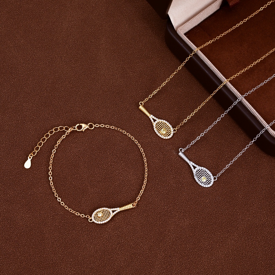 S925 Sterling Silver Mesh Tennis Racket Yellow Diamond Pendant Necklace Set Accessible Luxury Niche Simple Versatile Sports Style X099