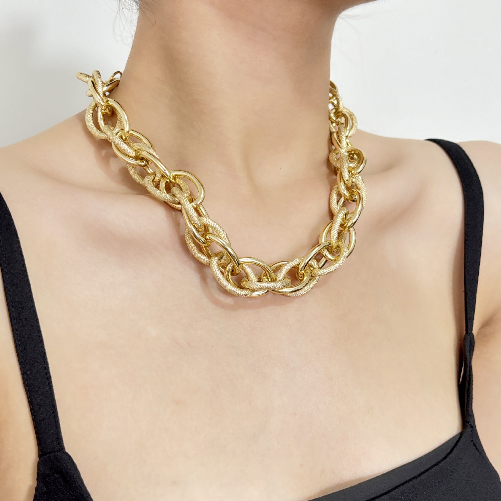 Cross-border Amazon Explosive Coarse Chain Necklace Street Hip-hop Simple Necklace Bracelet suit Single Circle Necklace