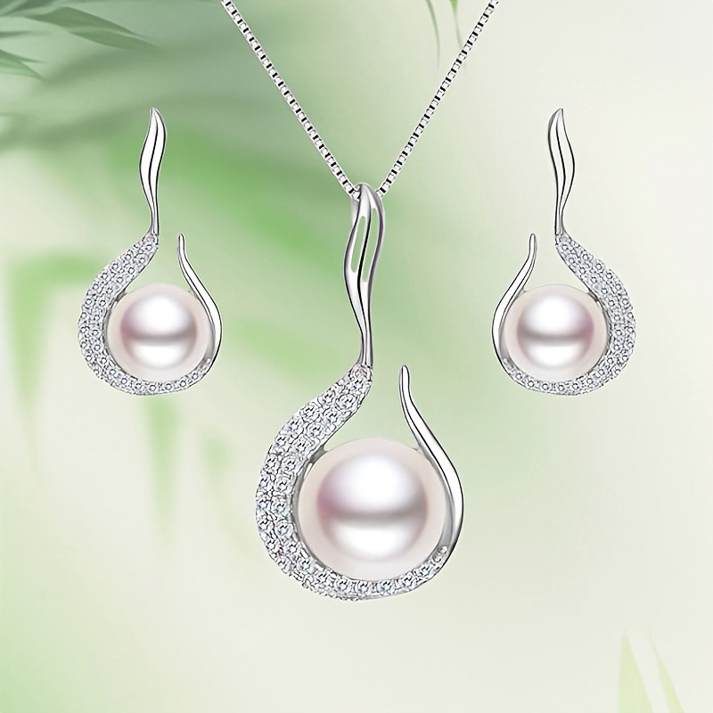 New Elegant Fashion Imitation Pearl Jewelry Set Necklace and Earrings Three-Piece Set Luxury Pendant Necklace Earrings