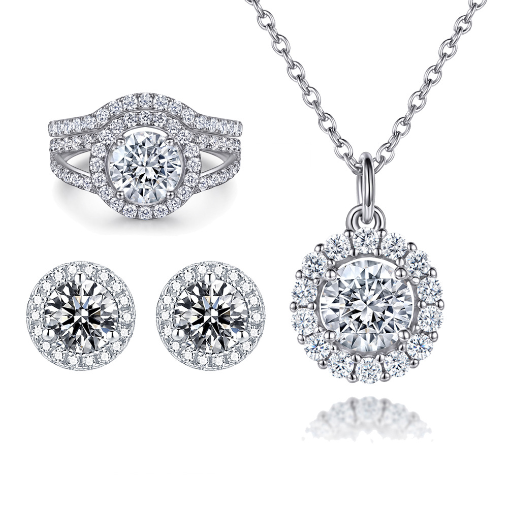 Cross-border European and American Fashion S925 Sterling Silver Ring Row Ring Set Necklace Women's All-match Earrings Jewelry Set Three-piece Set