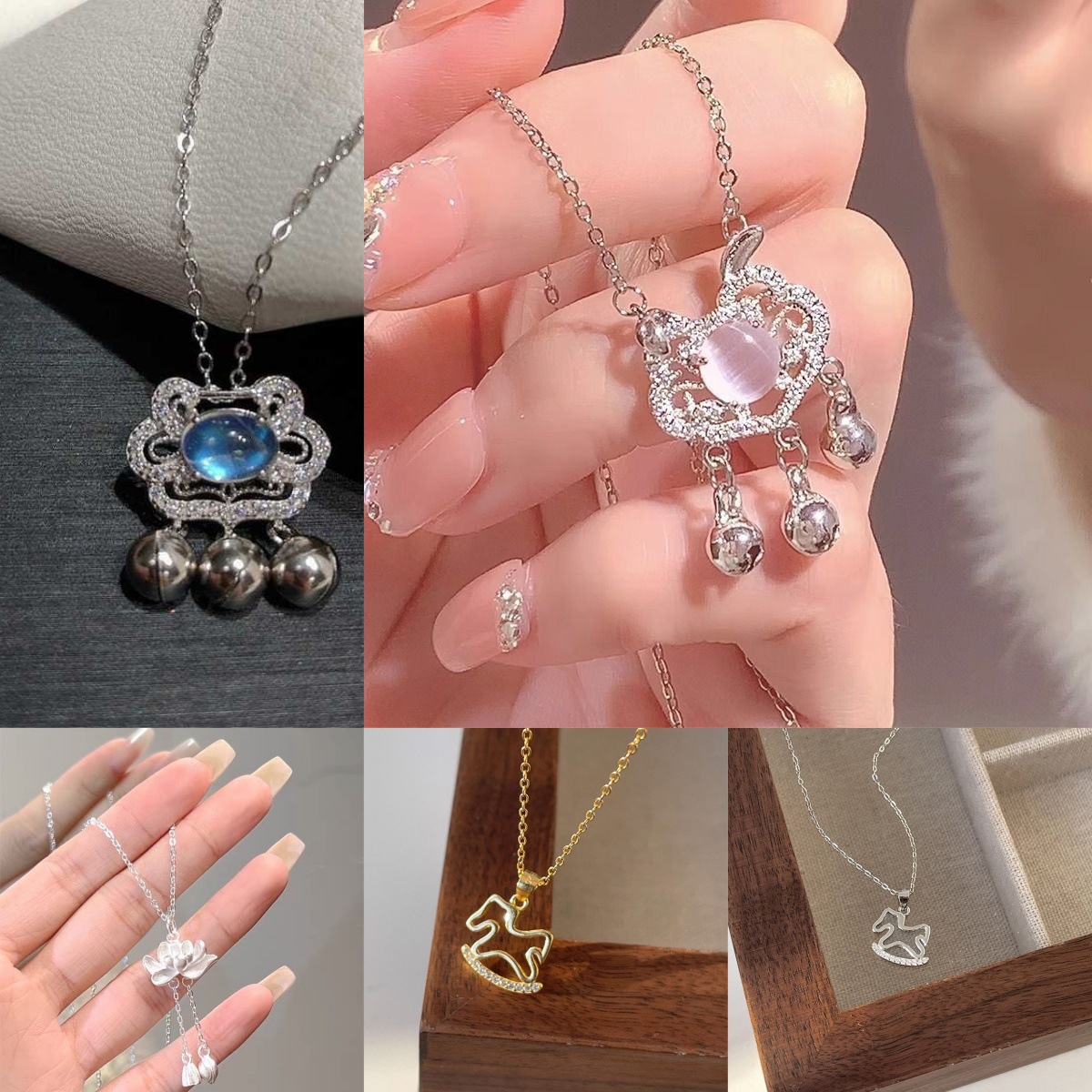 Five-Piece Set of Cartoon Chinese-Style Peace Bell Necklaces for Women, Light Luxury Niche High-End Chains for Friends and Besties