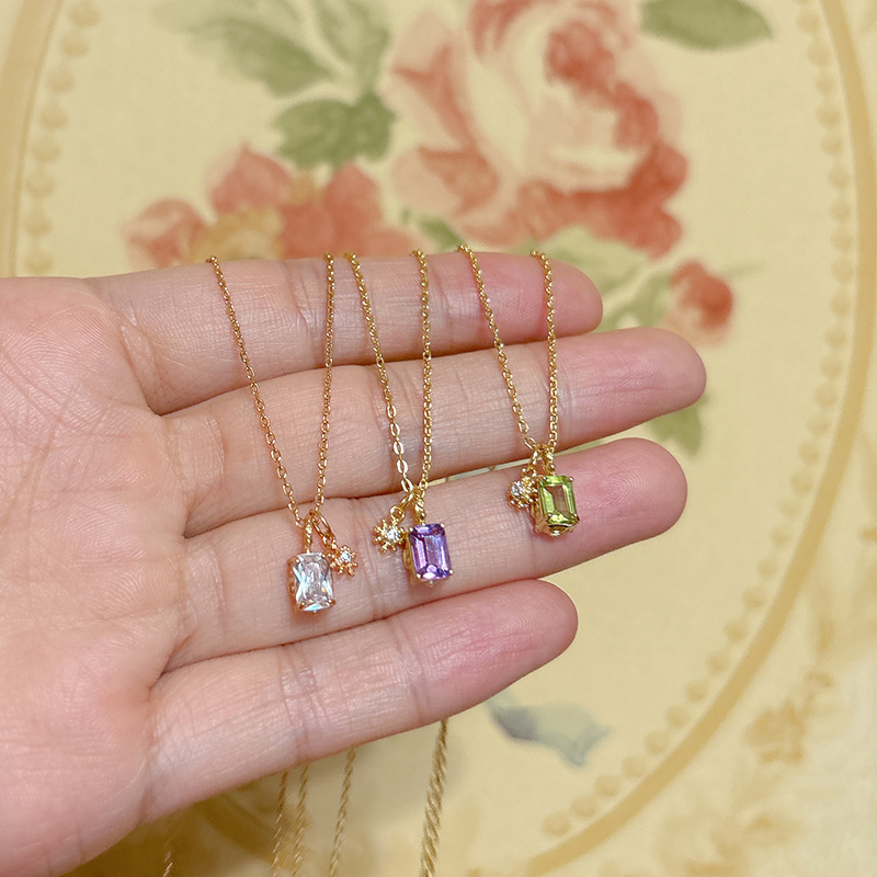 Japanese Accessible Luxury Natural Peridot Amethyst White Crystal Sugar Cube Snowflake Clavicle Chain 925 Silver Two-Piece Necklace
