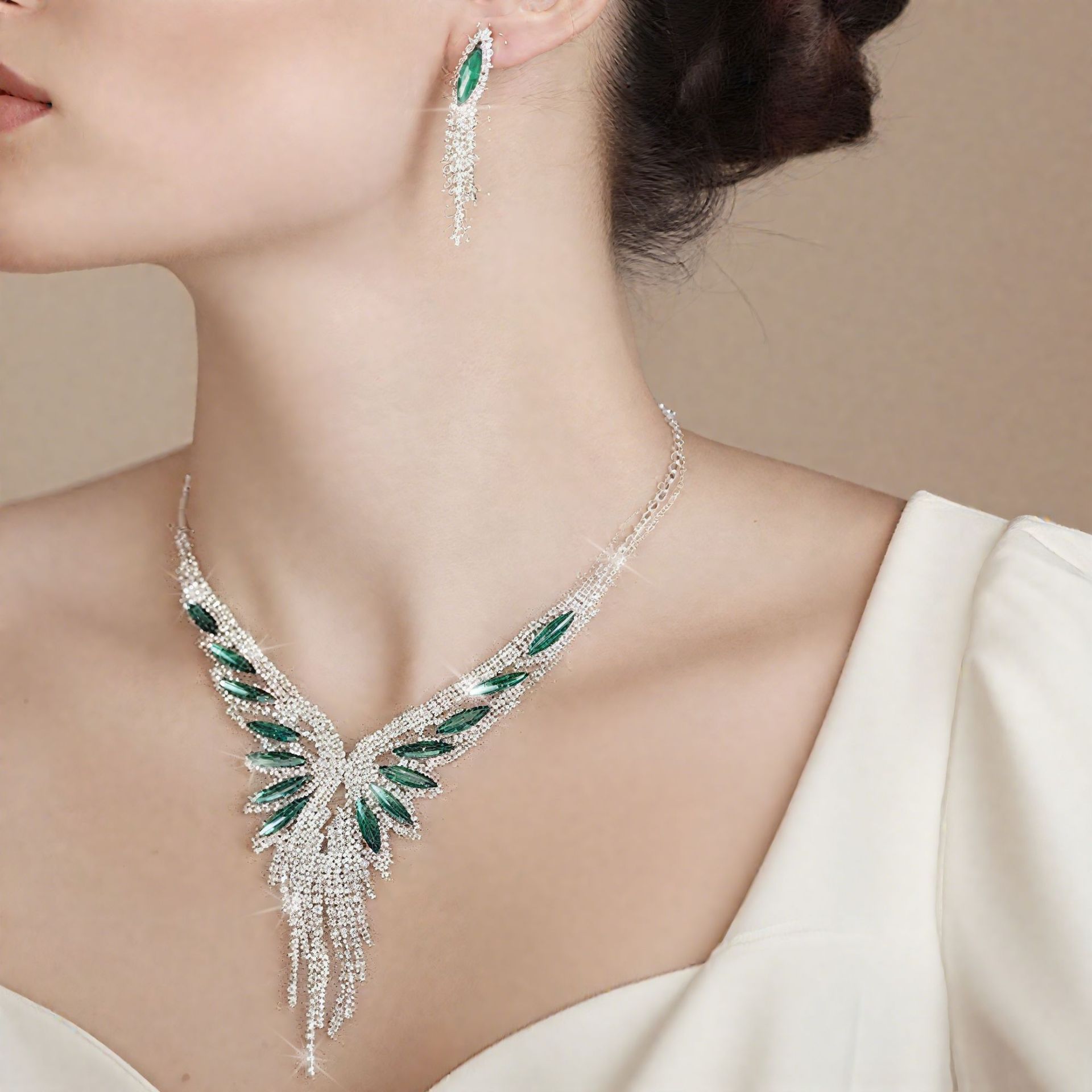 European and American Cross-Border Necklace Set Claw Chain Set Diamond Tassel Exquisite Banquet Dress Set Chain Fashion Bridal Jewelry