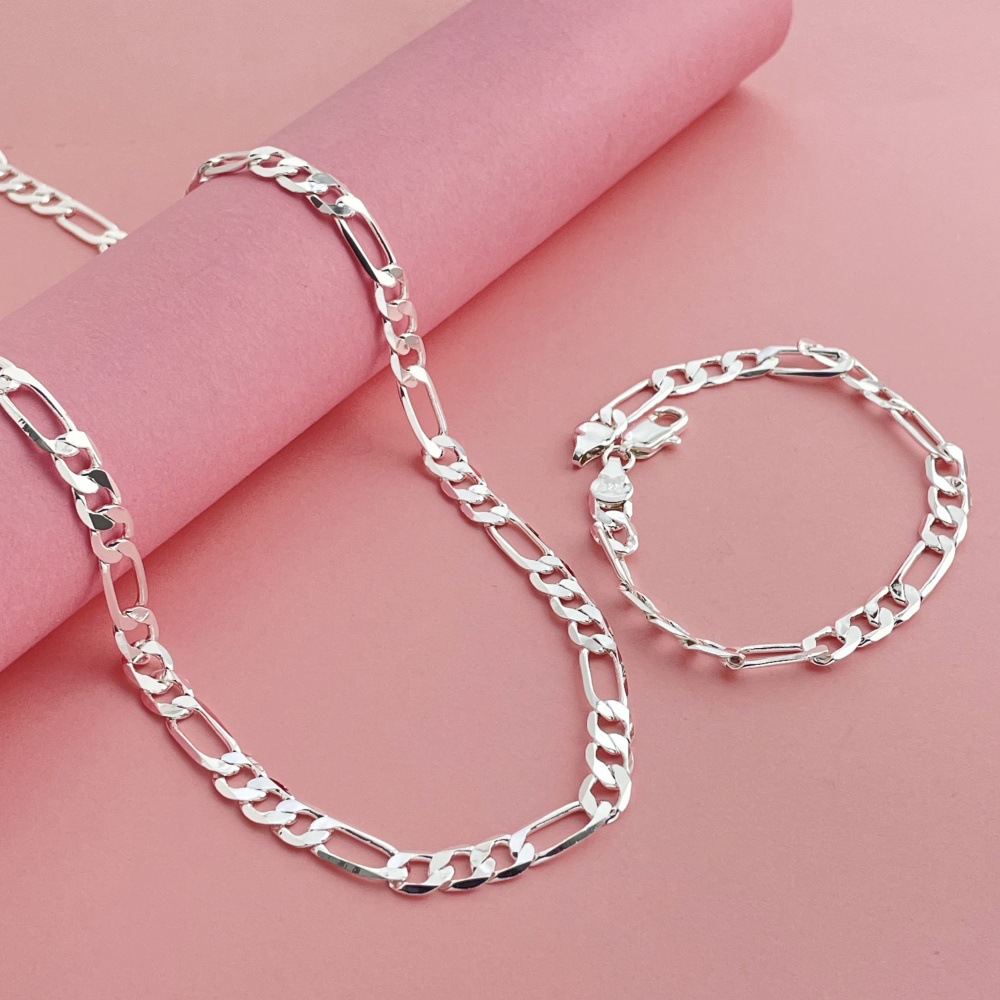 Foreign Trade Jewelry Plated with 925 Silver 6mm Three-Sided Side Necklace Bracelet Set Temu Aliexpress Hot Sale