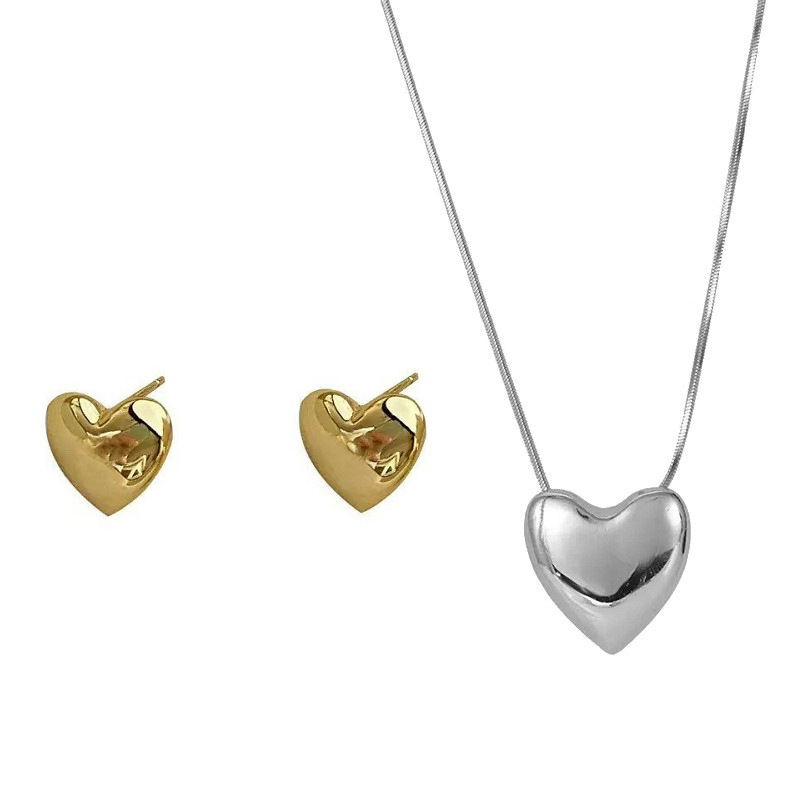 Casual and Versatile Jewelry Set, Glossy Heart Earrings, Necklace, Blogger's Same Style, Accessible Luxury Elegant, Peach Heart-Shaped Combination