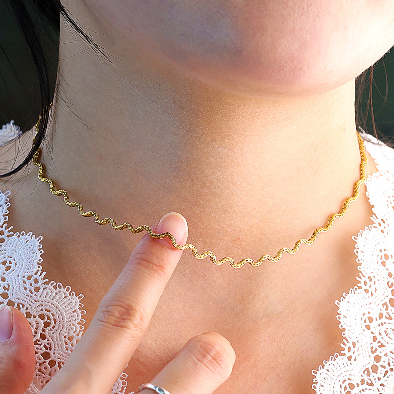 Wave Metal Simple Lines Ins Style Choker Instant Noodle Bracelet Necklace Set Titanium Steel Gold and Silver