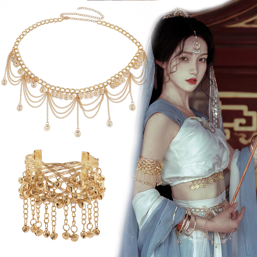Fashionable Retro Personalized Travel Photography Dance with Tassel Coin Pendant Waist Chain Bell Bracelet Arm Bracelet Jewelry Set