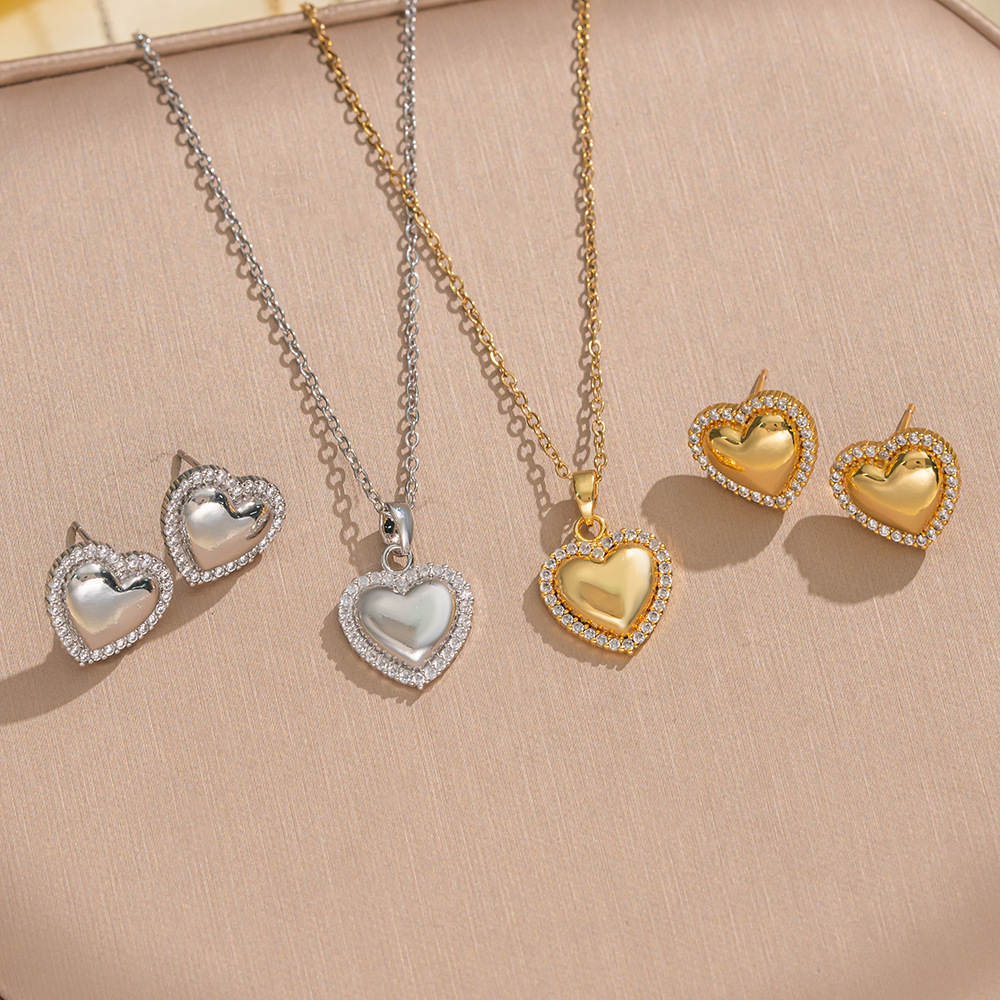Fashion New Glossy Heart Set Series Necklace Earrings Micro-Inlaid Zircon Jewelry Light Luxury High-End Necklace Accessories