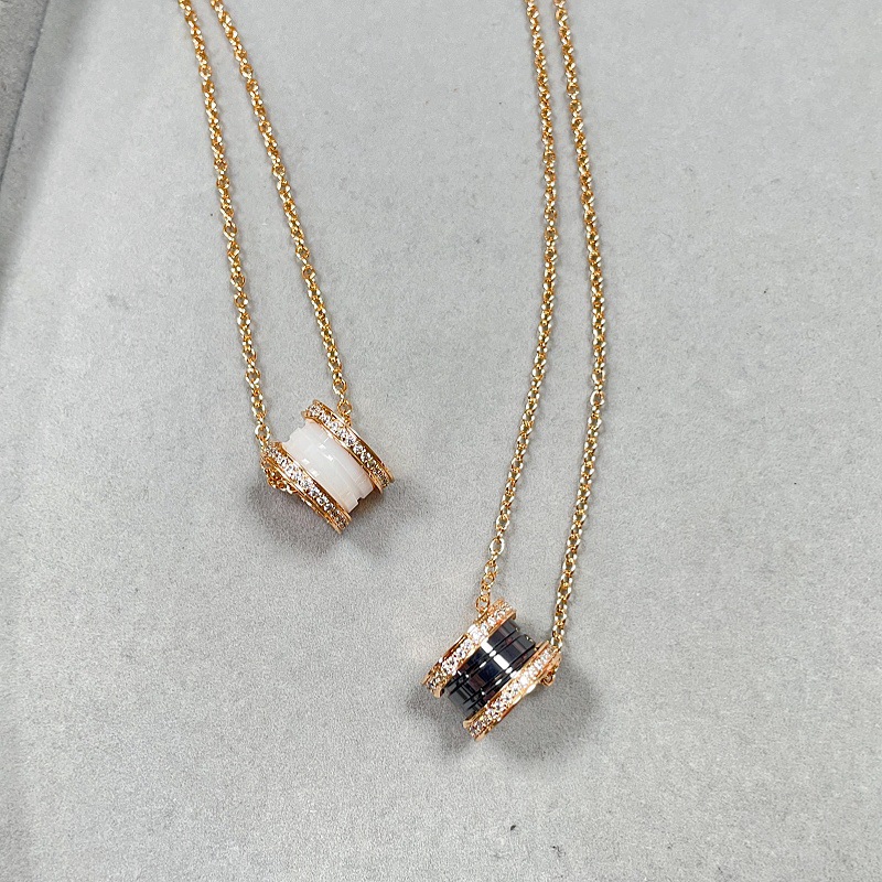 Baojia High Version Best-Selling Charity Black and White Ceramic Full Diamond Necklace Bracelet Earrings Unique Design Jewelry Set