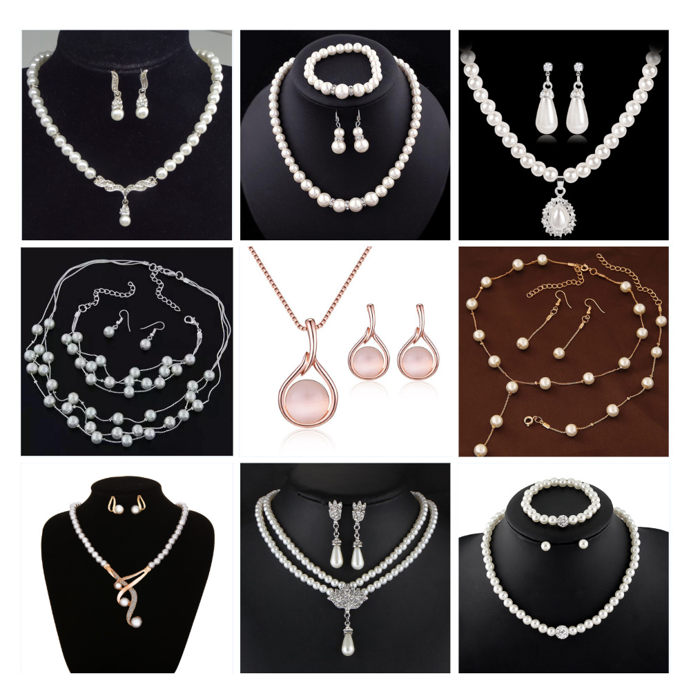 European and American Cross-border Trend Pearl Set Fashion Personality Necklace Earrings Bracelet Three-piece Bridal Jewelry Hot Sale