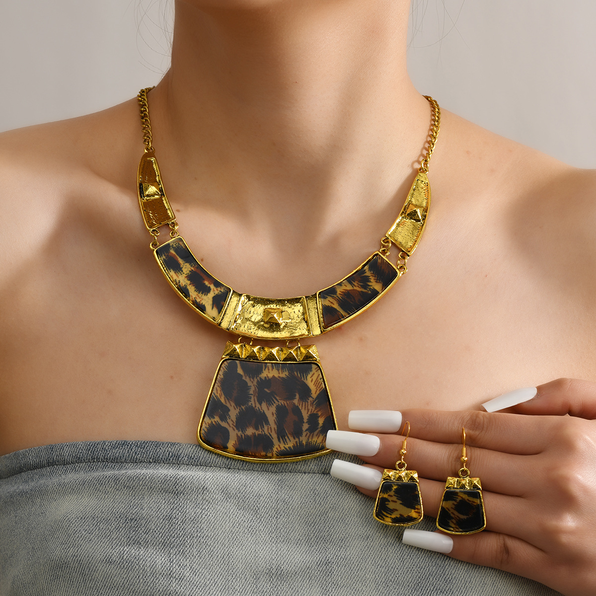 New European and American Cross-Border Exaggerated Retro Leopard Print Necklace Sweater Chain Necklace Alloy Necklace Earrings Set for Women Wholesale