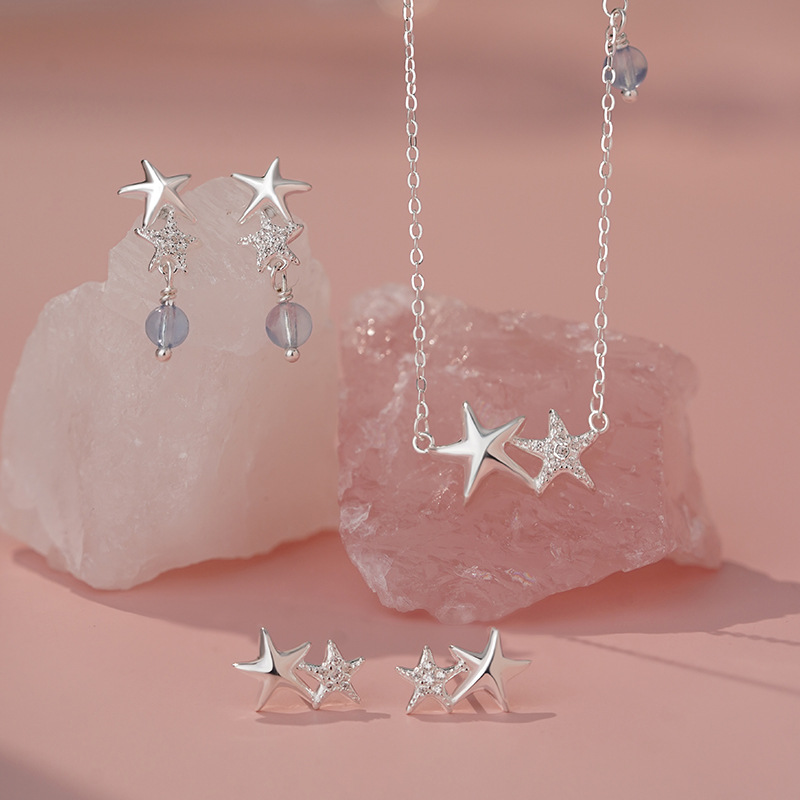 Original Ganjia S999 Foot Silver Starfish Rhyme Series Three-Piece Set Fresh Summer Artistic Exquisite Clavicle Chain