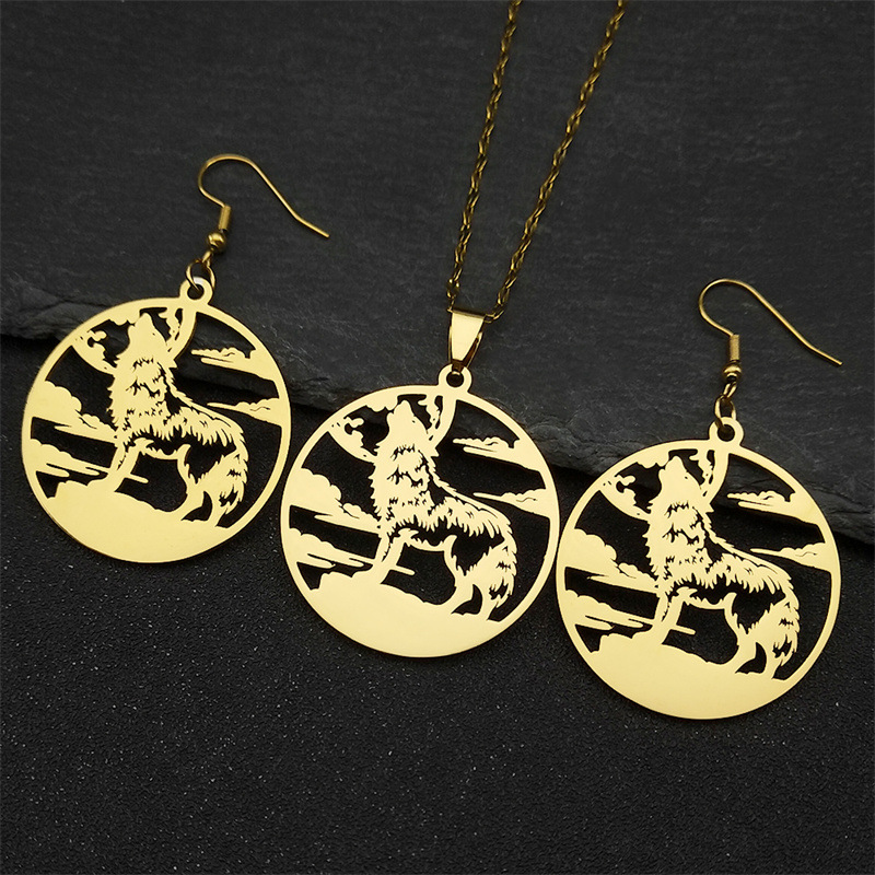 Cross-Border Stainless Steel Gold and Silver Sky Wolf Roaring Crowd Pendant Necklace Animal Lover Men's Jewelry