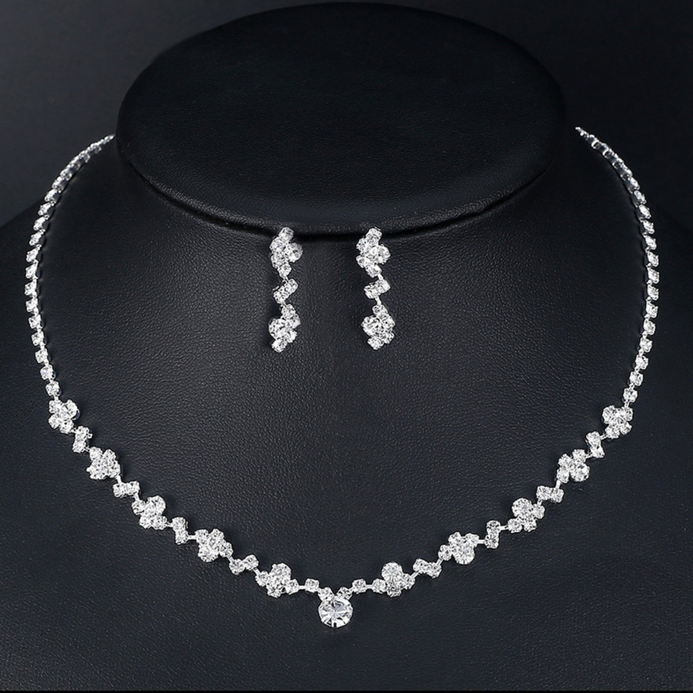 Simple and Exquisite Jewelry Bridal Necklace Earrings Bracelet Set Three-Piece Set Full of Diamonds Clavicle Dinner Dress Accessories