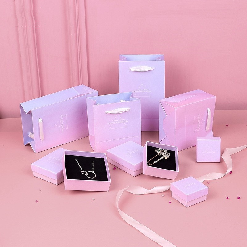 Xijia D Family Four-Piece Set of Earrings, Necklace, Gift Box, Cloth Bag, Silver Polishing Cloth, Paper Bag, Birthday Gift Packaging for Girlfriend