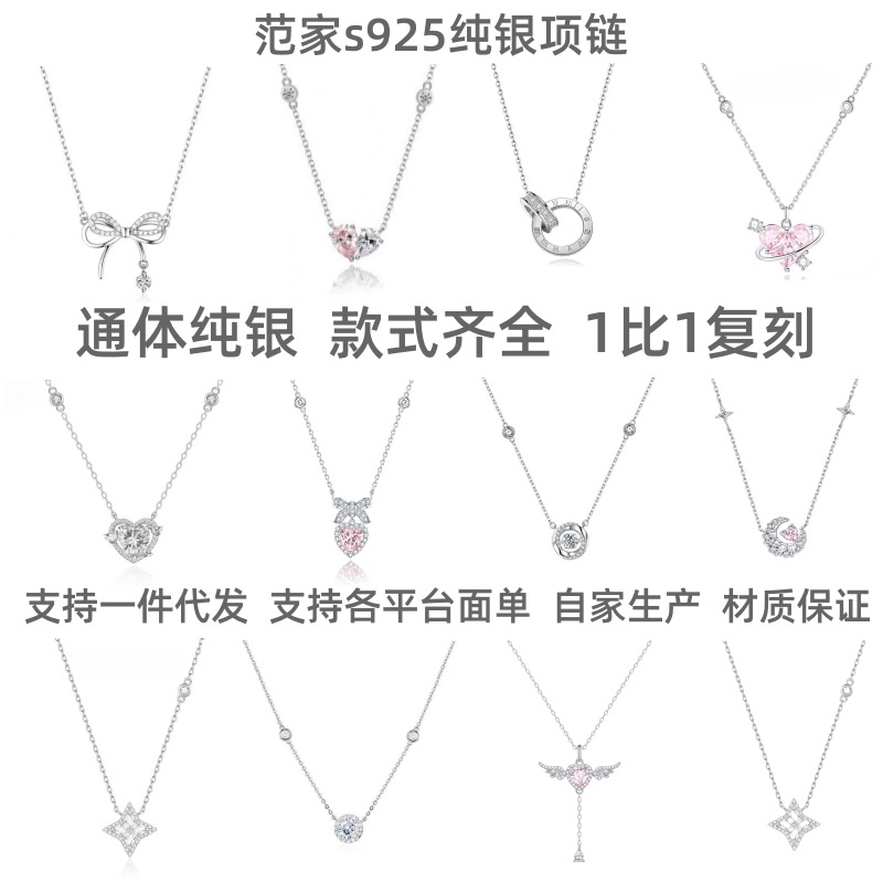 Fan Qi S925 Sterling Silver Necklace Women's Bow Three-Second Heartbeat Wisteria Flower Clavicle Chain Accessible Luxury Sweet Butterfly Dream Pendant