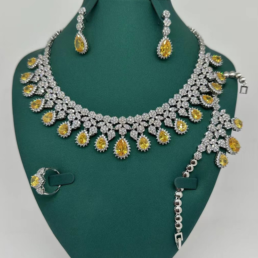 European and American Popular Four-Piece Set of Exquisite Water Drop Bracelets, Fashionable Electroplated Necklaces, Ear Hooks, Ring Sets, Export Jewelry
