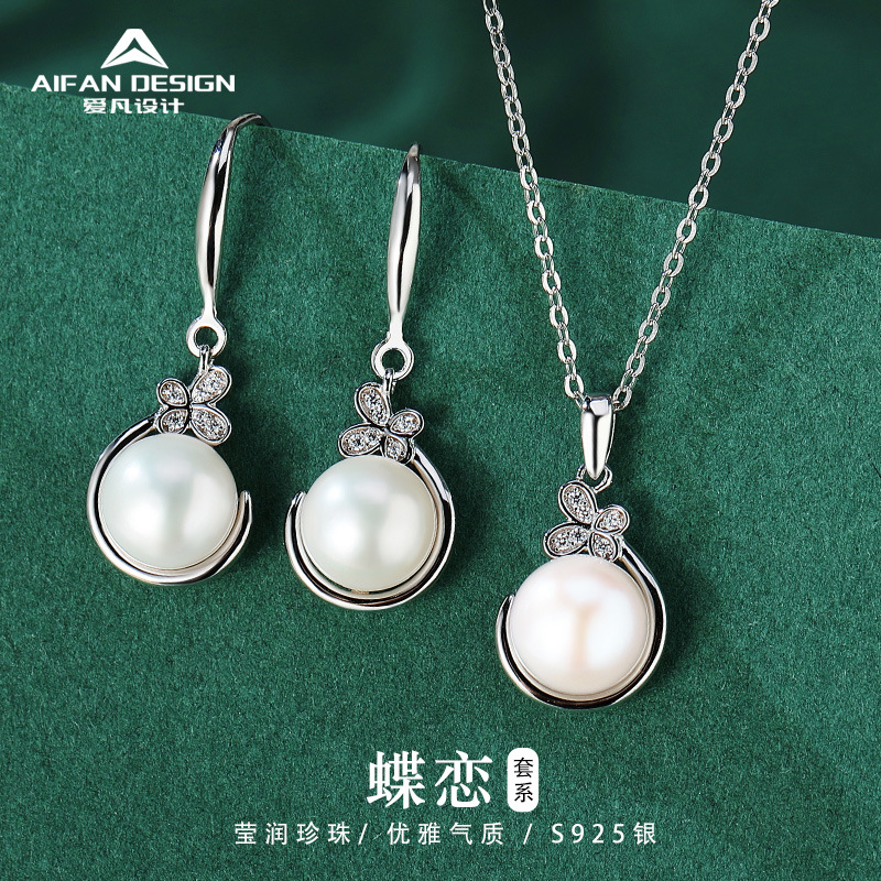 S925 Sterling Silver Fashion Butterfly Love Necklace Women French Temperament Freshwater Pearl Butterfly Clavicle Chain Niche Jewelry suit