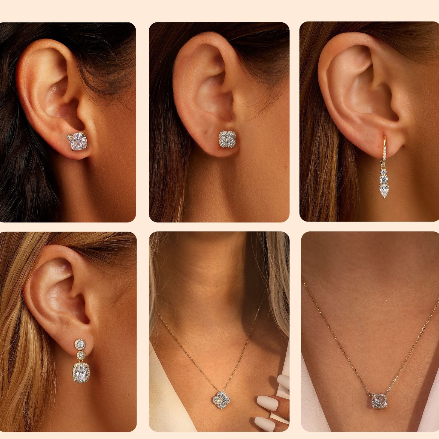 925 sterling silver classic six-claw necklace + earrings simple moissanite six-claw pendant earrings empty silver ornaments set