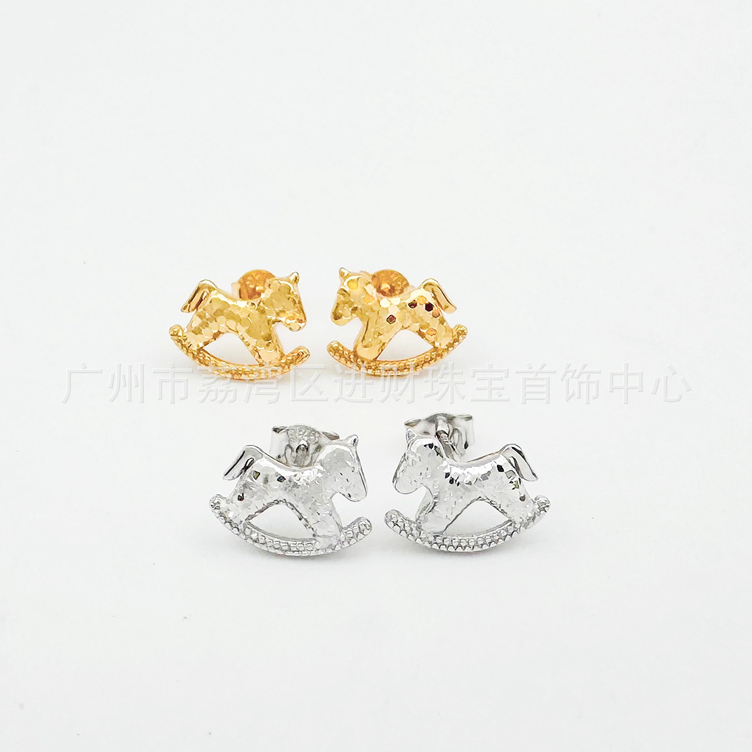 Childlike S925 Sterling Silver Crushed Ice Shaker Rocking Horse Necklace Earring Set Fun Niche Design Jewelry