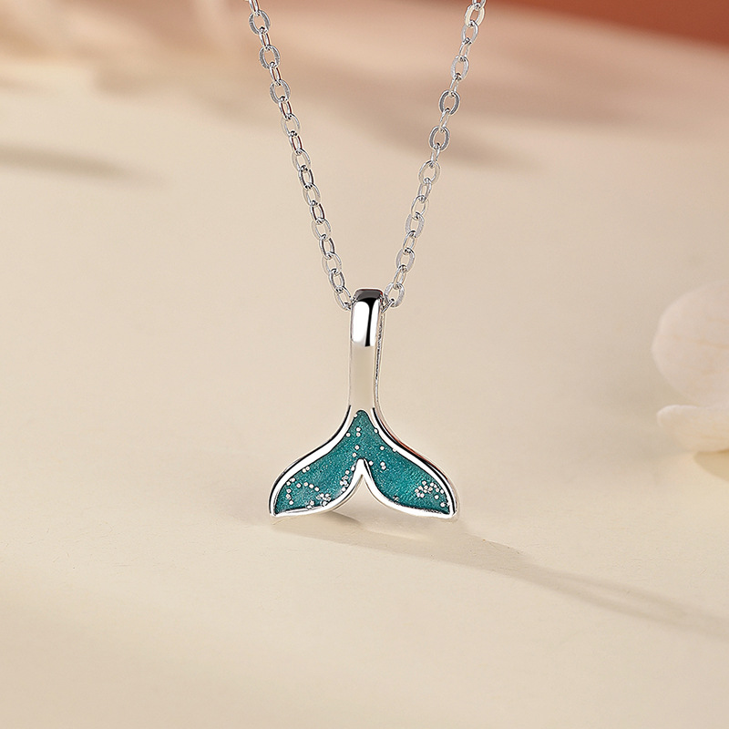 S925 Sterling Silver Dreamy Blue Mermaid Tail Earrings for Women Japanese and Korean Simple Blue Mermaid Tail Earrings Necklace Set