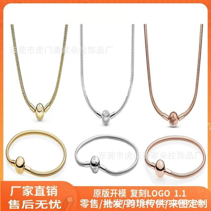 Panjia 925 White Copper Silver-Plated Snake Bone Chain Necklace Set Exquisite Fashion Elegant DIY Matchinging