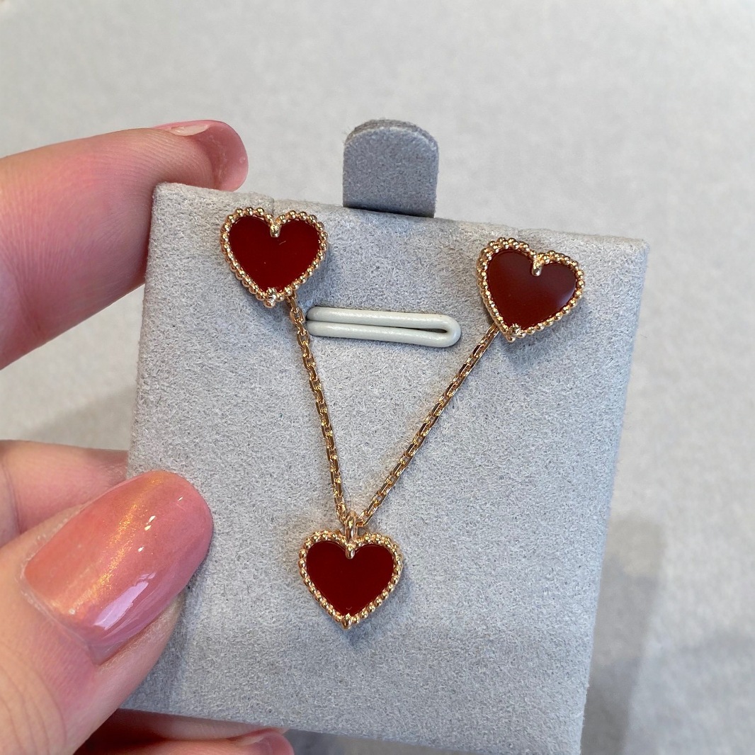 925 Sterling Silver Vanjia Red Agate Heart Necklace for Women, Peach Heart Red Chalcedony Earrings, Clavicle Chain Set, Petal Pendant