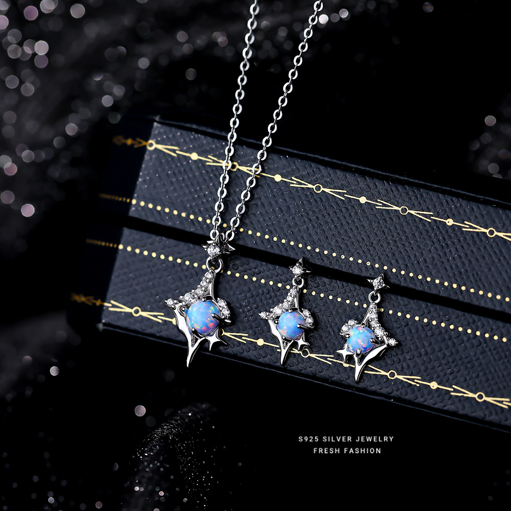 925 sterling silver blue opal Awn star personalized necklace ins niche design sense advanced Star clavicle chain suit