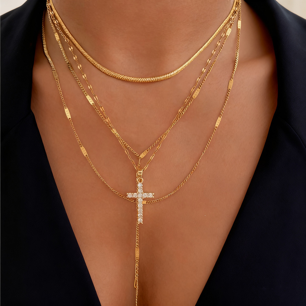 Cross-Border European and American Jewelry, Trendyy Cross Pendant Necklace Set, Fashionable Personalized Necklace Multi-Piece Set for Men and Women
