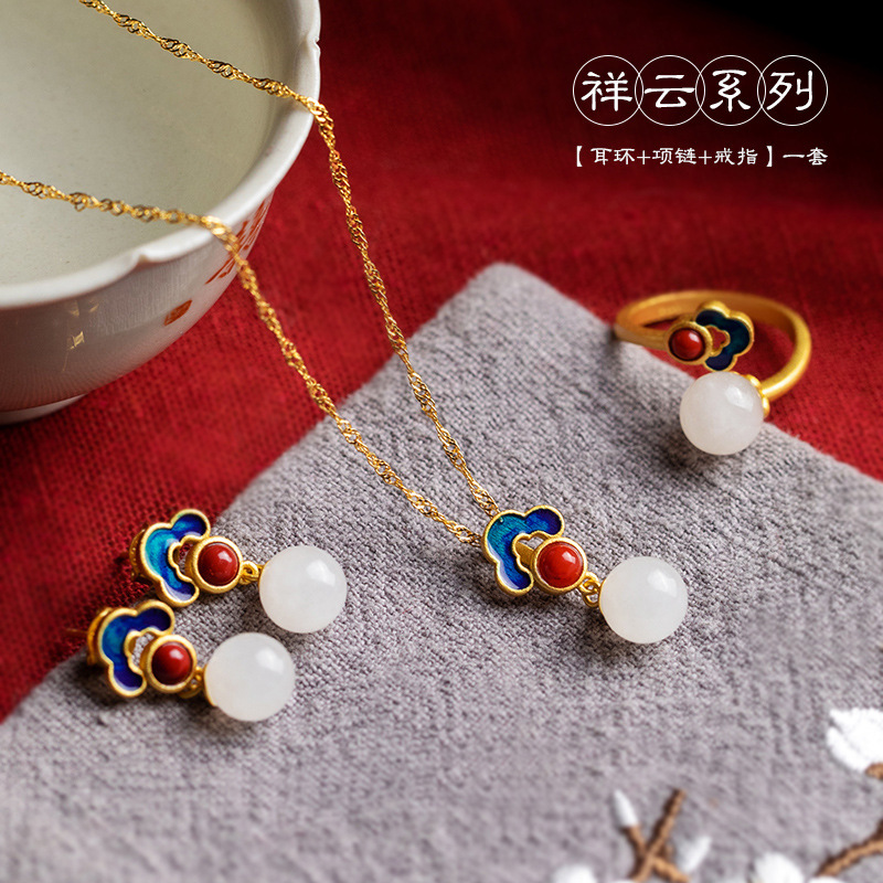 Sterling Silver Necklace Women's Summer Xiazhong Design Sense Advanced Sense Earrings Ring Set 520 Valentine's Day Gift for Girlfriend