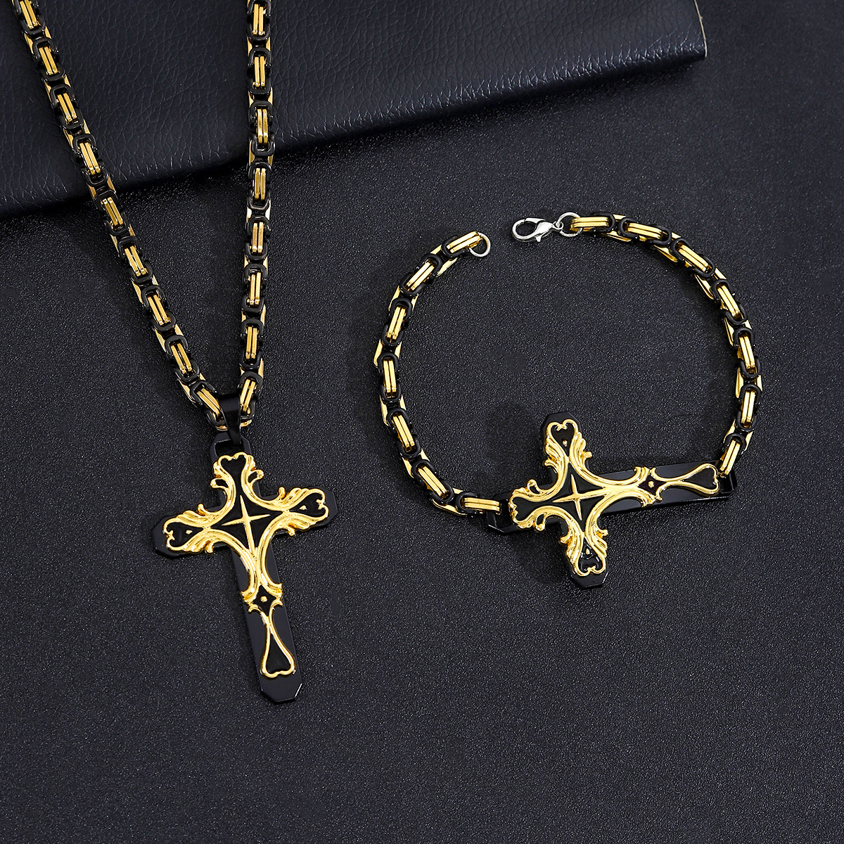 Hot-Selling Retro Cross Pendant Necklace Bracelet Set Women's Necklace Fashion Men's Jewelry Wholesale