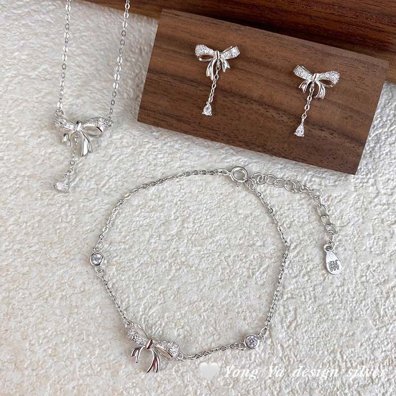 Original S999 Silver Bow Tassel suit Light Luxury Exquisite Sweet Princess Artistic Niche Clavicle Chain