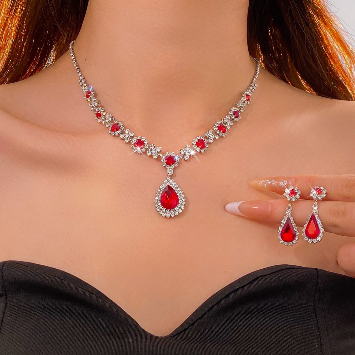 European and American Cross-Border Diamond-Encrusted Water Drop Necklace, Retro, Versatile, Fashionable and Exquisite Clavicle Chain, Light Luxury and High-End Jewelry Set