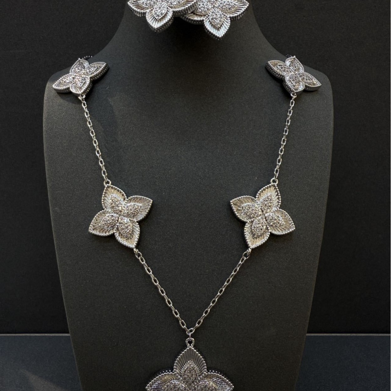Cross-border Ultrafine Zircon Water Drop Flower Necklace Entry Luxury Niche Clavicle Chain Elegant High-end Earrings Necklace suit