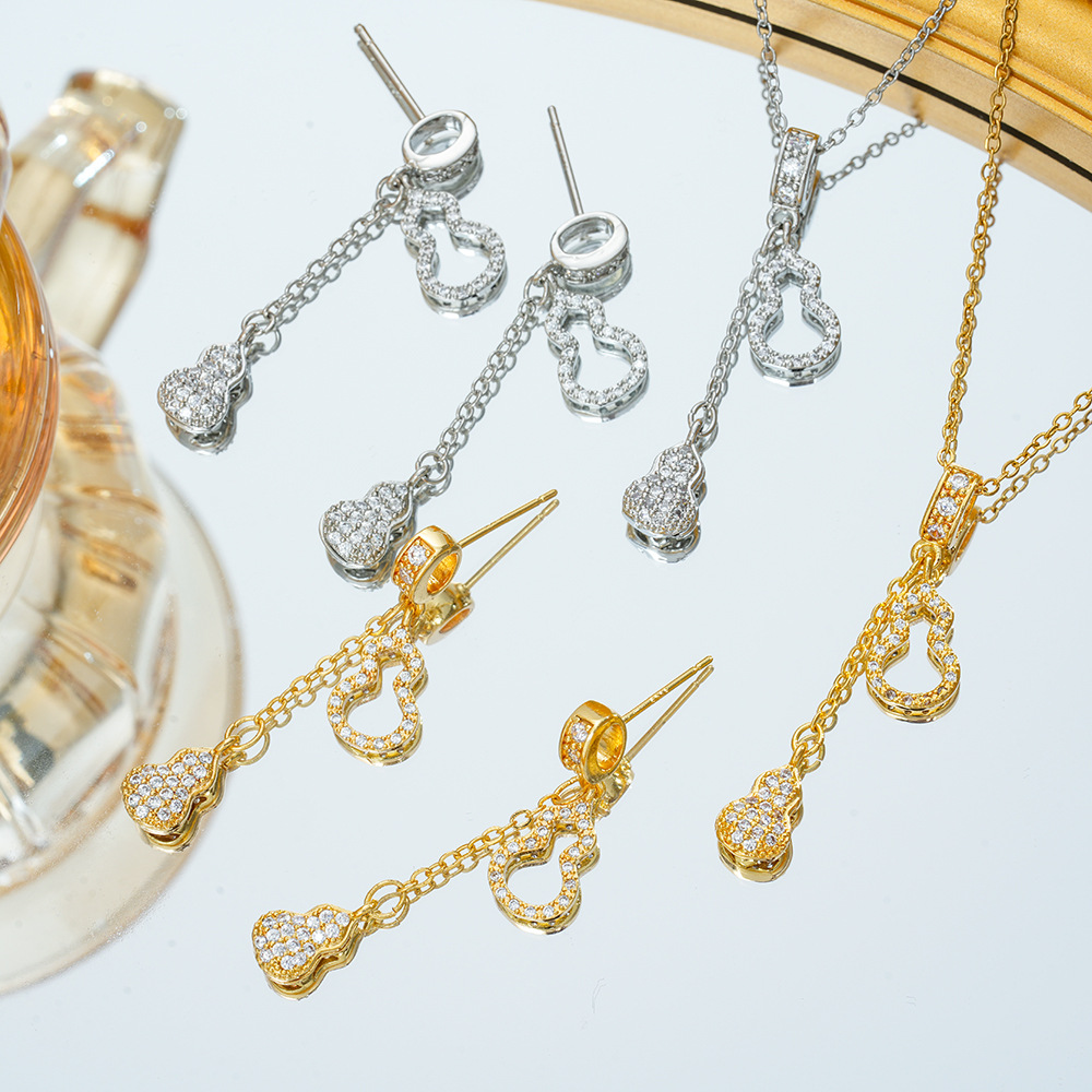 [Titanium Steel] Summer New Style Non-Fading Fashionable Gourd Tassel Accessible Luxury Simple Niche Design Women's Necklace Set