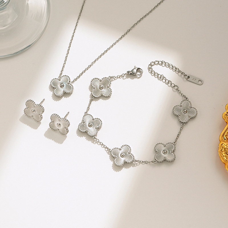European and American Fashion Versatile Laser Four-Leaf Flower Set Titanium Steel Necklace Female Internet Celebrity Elegant High-End Clavicle Chain Bracelet