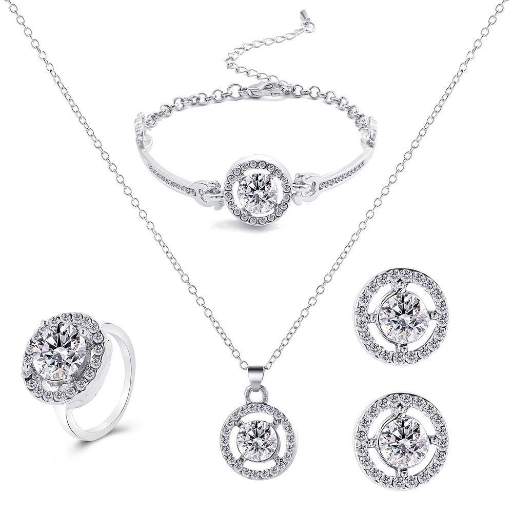 Foreign trade jewelry suit women's fashion four-piece set creative temperament personality diamond bracelet necklace earrings ring wholesale