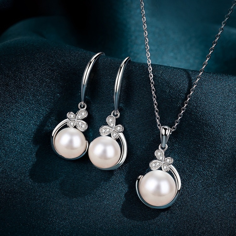 S925 Silver Freshwater Pearl Necklace Women's Niche Design Accessible Luxury Earrings Classy Clavicle Chain Holiday Gift Set
