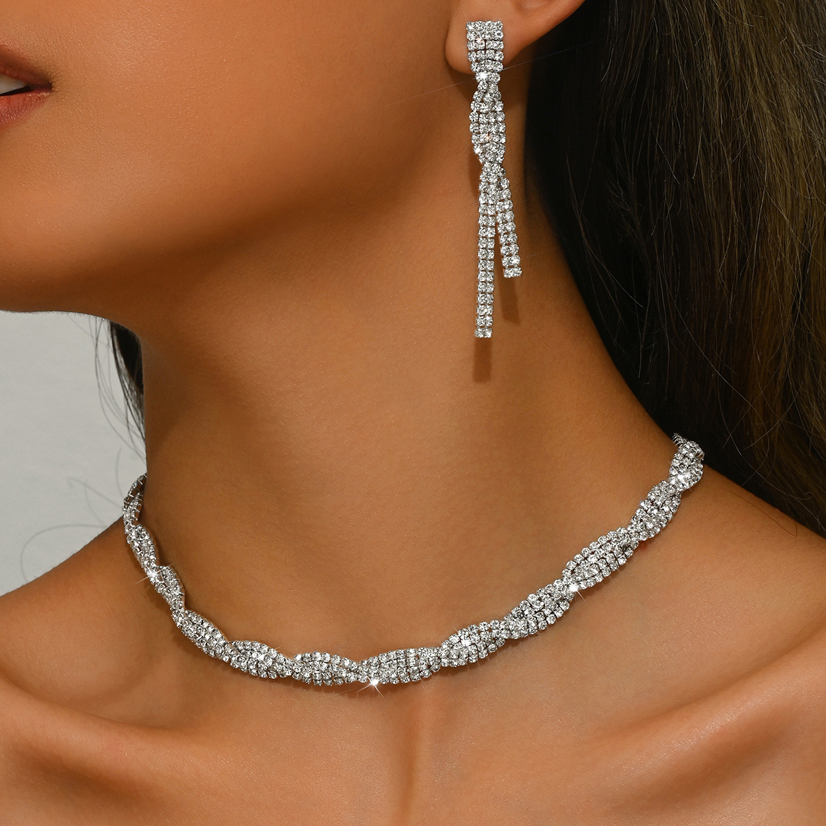 A Set of European and American Cross-Border Exquisite Claw Chain Necklaces and Exaggerated Earrings Set, Two-Piece Water Drop Choker Evening Accessories for Women