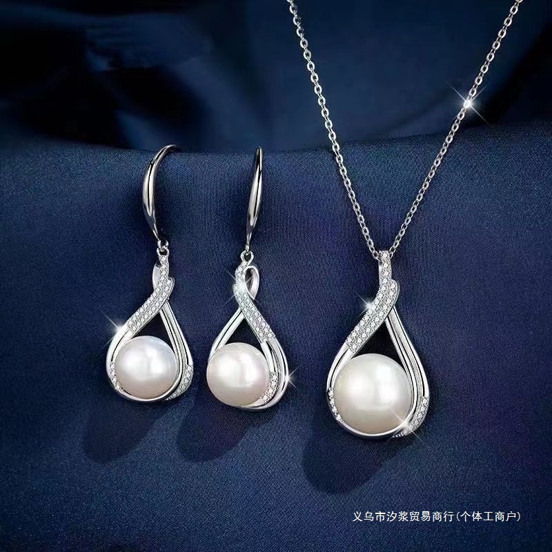 2025 Popular Light Luxury Pearl Necklace Jewelry Set Cross-Border Supply European and American Ladies Banquet Dress Jewelry Wholesale