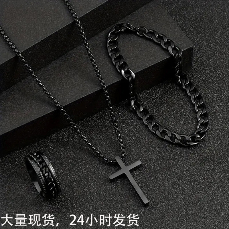 European and American 2025 Cross-Border Amazon Hot-Selling New Cross Jewelry Chain Ring Bracelet Necklace 3 Sets