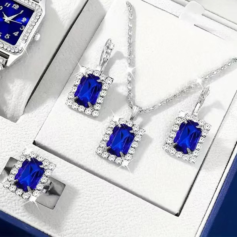 Cross-border New Jewelry suit Women's Fashion All-match Rhinestone Zircon Necklace Earrings Ring Watch Accessories