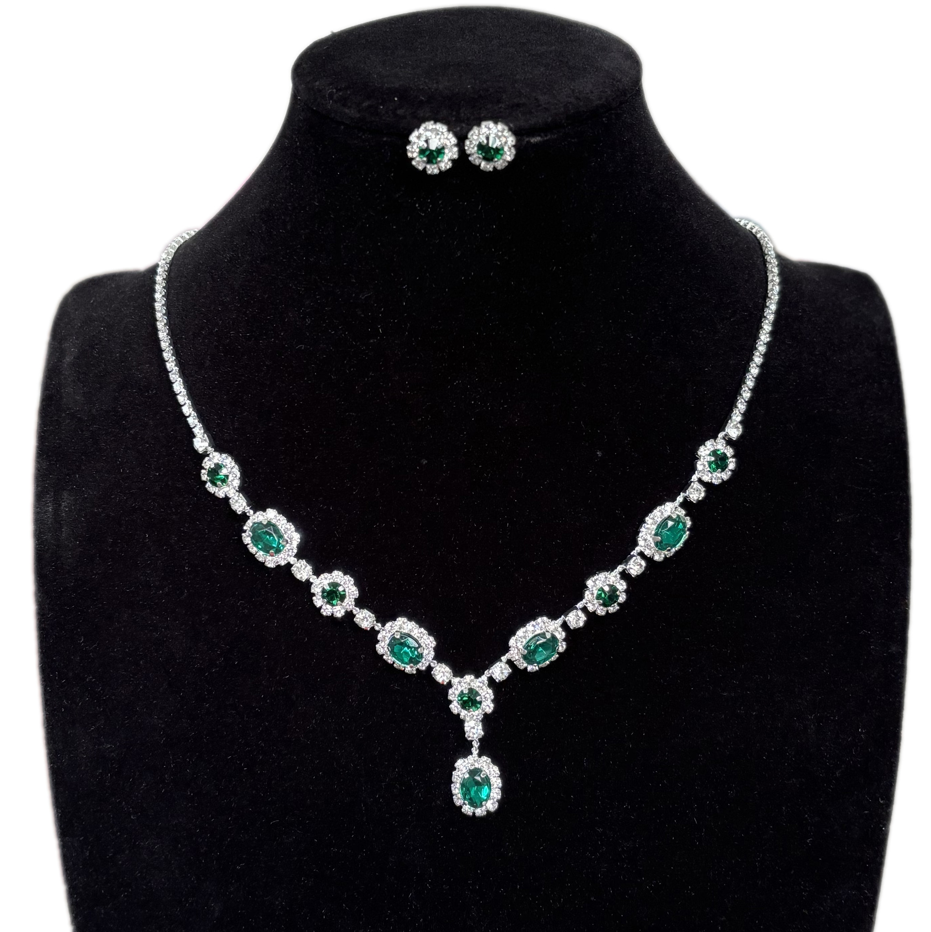 Cross-border Emerald Women's Earrings Necklace Two-piece Bridal Chain suit Diamond Necklace Accessories Banquet High-grade Chain