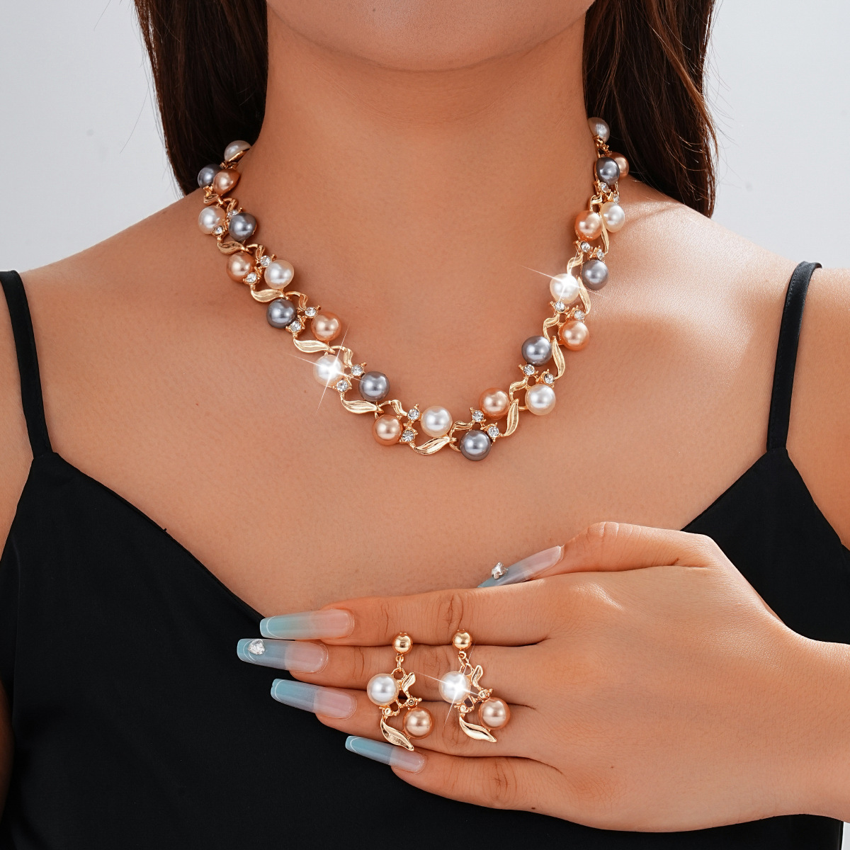 Factory Direct Supply European and American Cross-Border Fashion Evening Ball Necklace Earrings Jewelry Set Bridal Wedding Dress Accessories