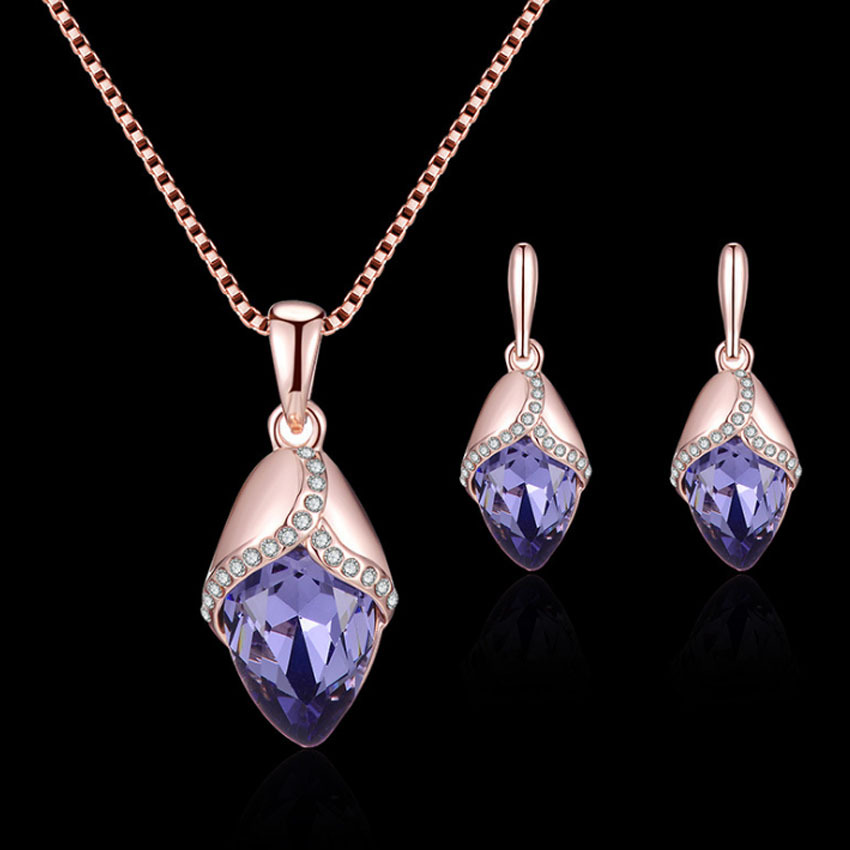 Cross-border rose gold alloy diamond crystal necklace women's earrings European and American wedding earrings set jewelry manufacturers