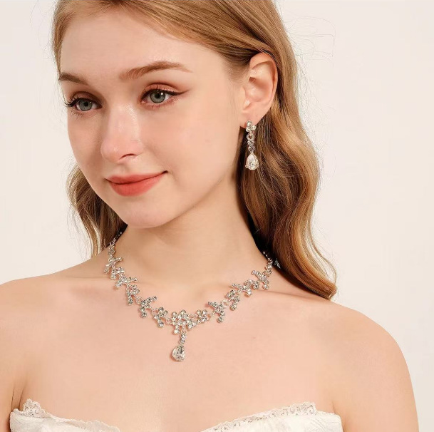 Brilliant diamond zircon water drop necklace earrings bride wedding jewelry shooting jewelry set wholesale