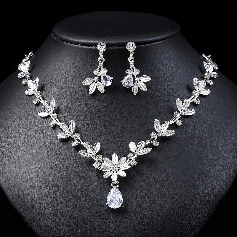 Cross-border European and American Leaves Diamond Necklace suit Light Luxury High-end Style Clavicle Chain Cold Style Dress Clavicle Chain for Women