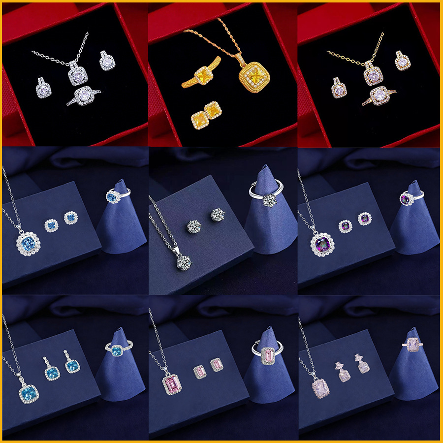 E-commerce New Fashion Jewelry Diamond Necklace Earrings Bracelet Ring Wedding Bridal Jewelry suit Combination