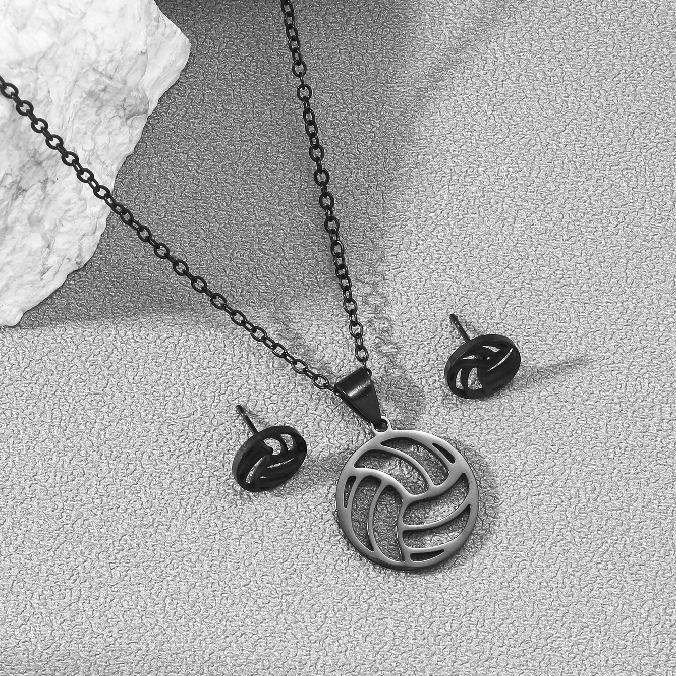 New Men's and Women's Sports Series Stainless Steel Volleyball Necklace Earrings Set Hollow Ball Jewelry Men's Necklace