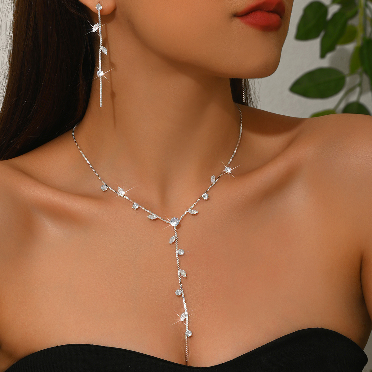European and American Cross-Border Leaf Water Drop Set Bridal Necklace Earrings Simple Fashion Stylish Elegant Aesthetic Niche Jewelry